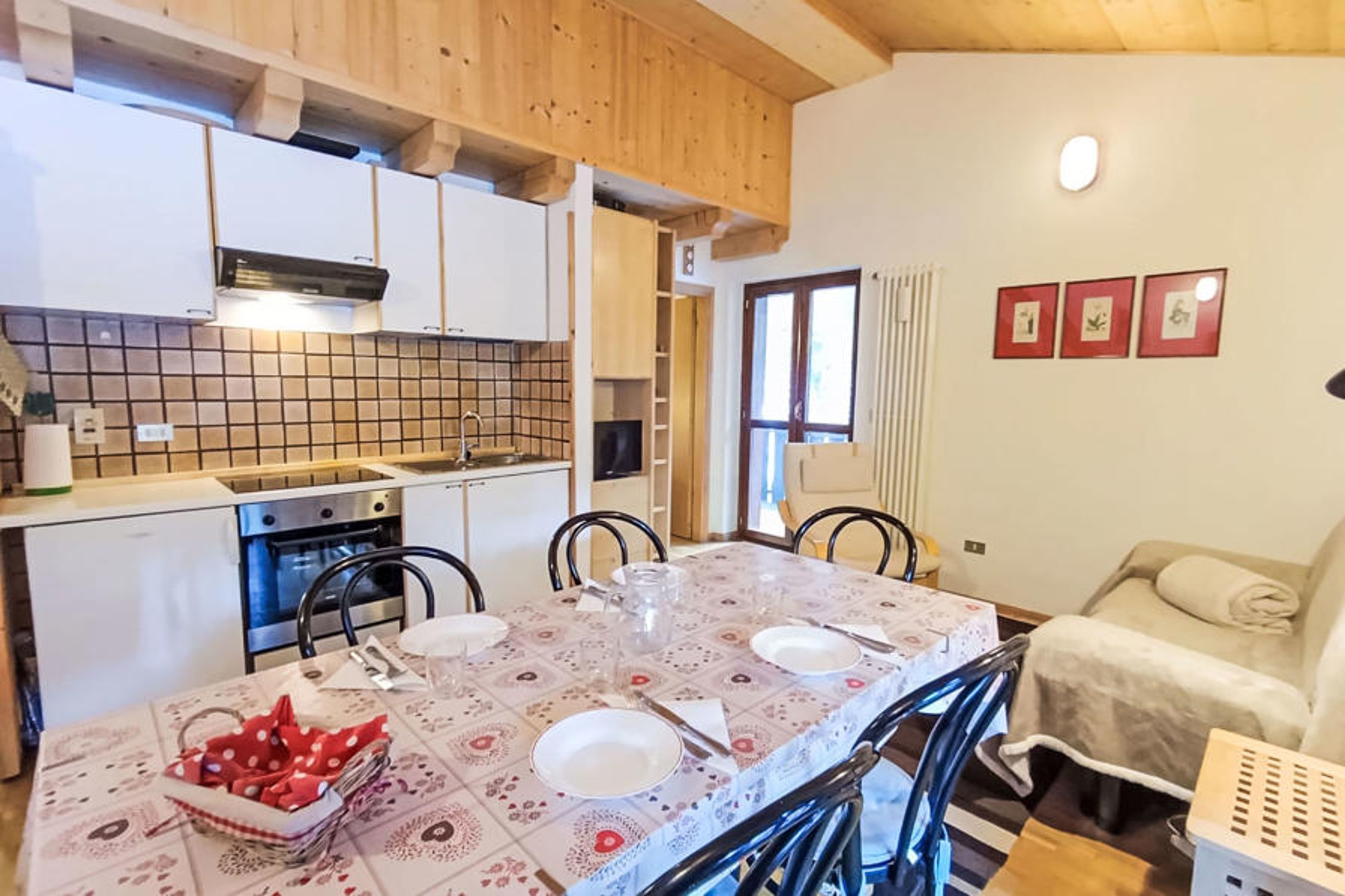 "Genziana", 2-room maisonette on 2nd floor. Partly with sloping ceilings, comfortable and cosy furnishings: living/dining room with TV. Exit to the balcony. 1 double bedroom. Open kitchen (4 induction hot plates) with dining table. Shower/bidet/WC. Heating available only from 01.12. to 01.05. Upper floor: (steep stair) with sloping ceilings, 1 double bedroom with 2 beds and shower/bidet/WC. Panoramic view of the mountains. Facilities: hair dryer. Parking (roofed, 1 car). Please note: non-smokers only. No lift. IT022039C26EGTWX46