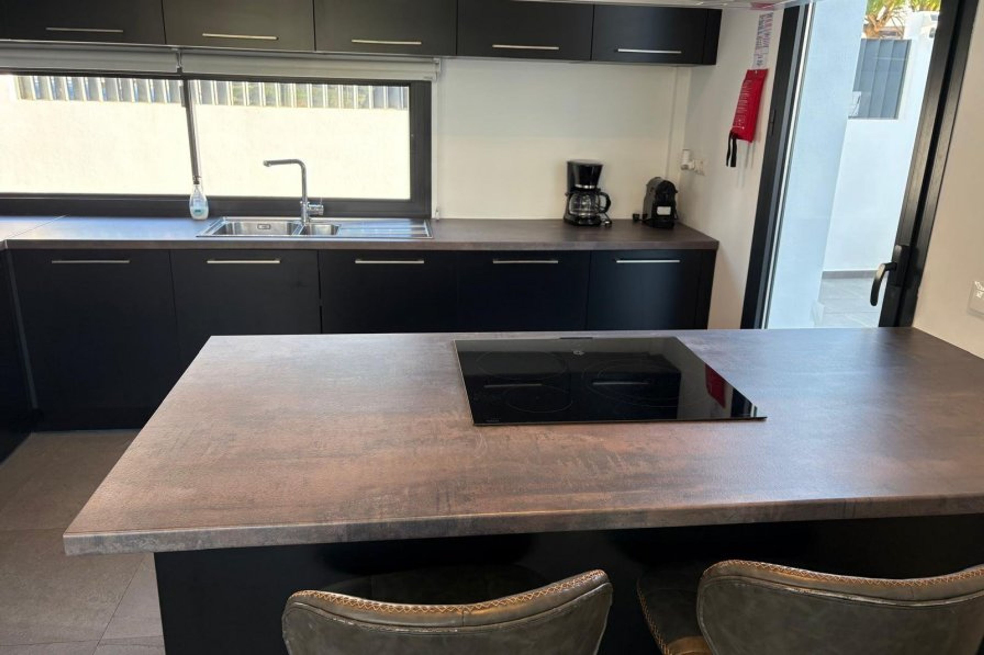 Inside, the villa is bright, spacious, and tastefully appointed, with elegant living areas and five beautifully presented bedrooms. The open-plan kitchen, fully equipped with modern appliances, opens directly onto the outdoor dining terrace, perfect for long lunches and evening entertaining.