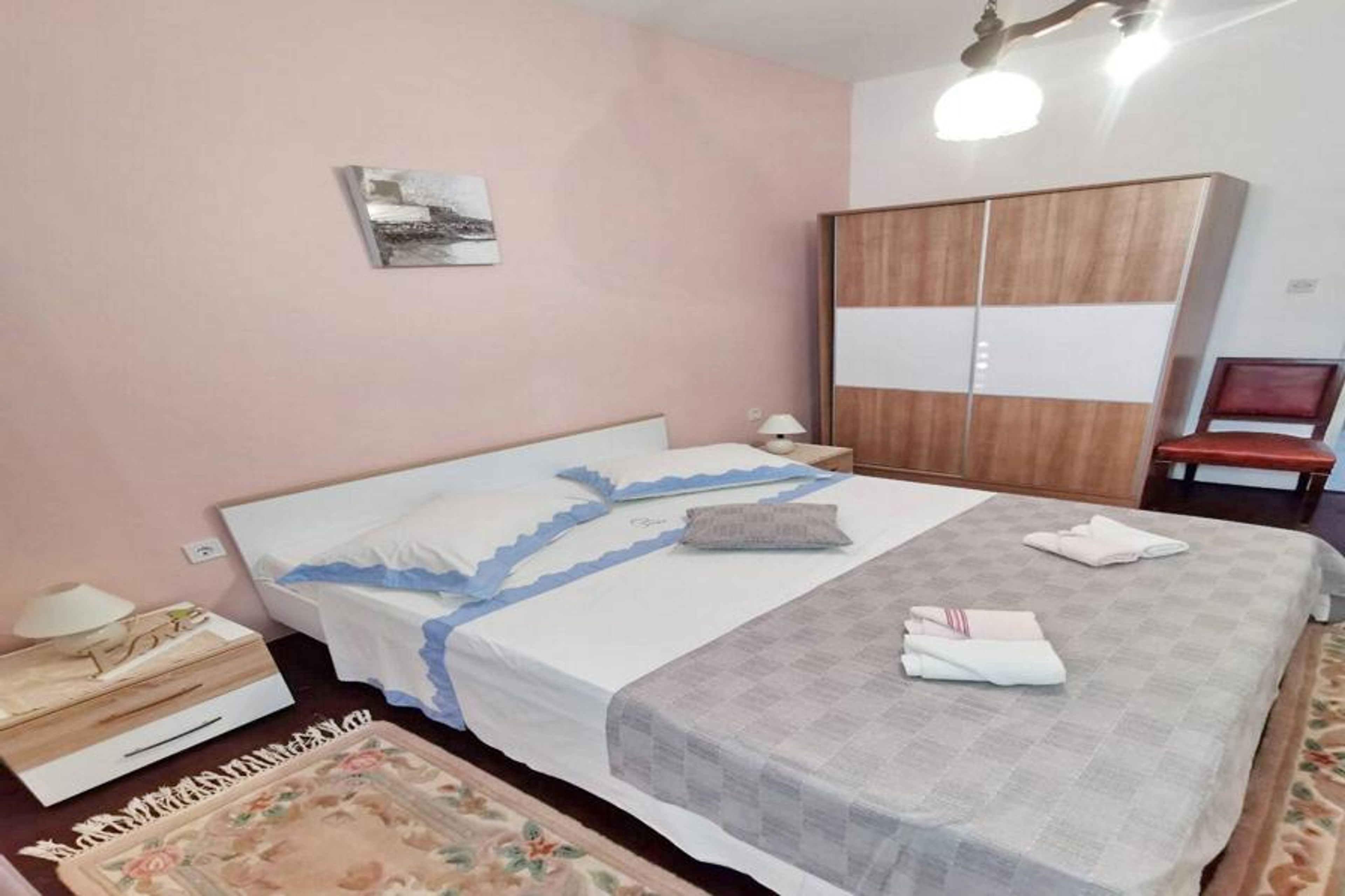 Overlooking the Adriatic Sea, this four bedroom apartment can comfortably accomodate up to 8 adults. It features free WiFi, air conditioning and a cable TV. The open space living room includes dining area with sofa and it is combined with the equipped kitchen and dining area. The private bathroom comes with shower and toilet. Towels, hair dryer and toilet paper are at your disposal.