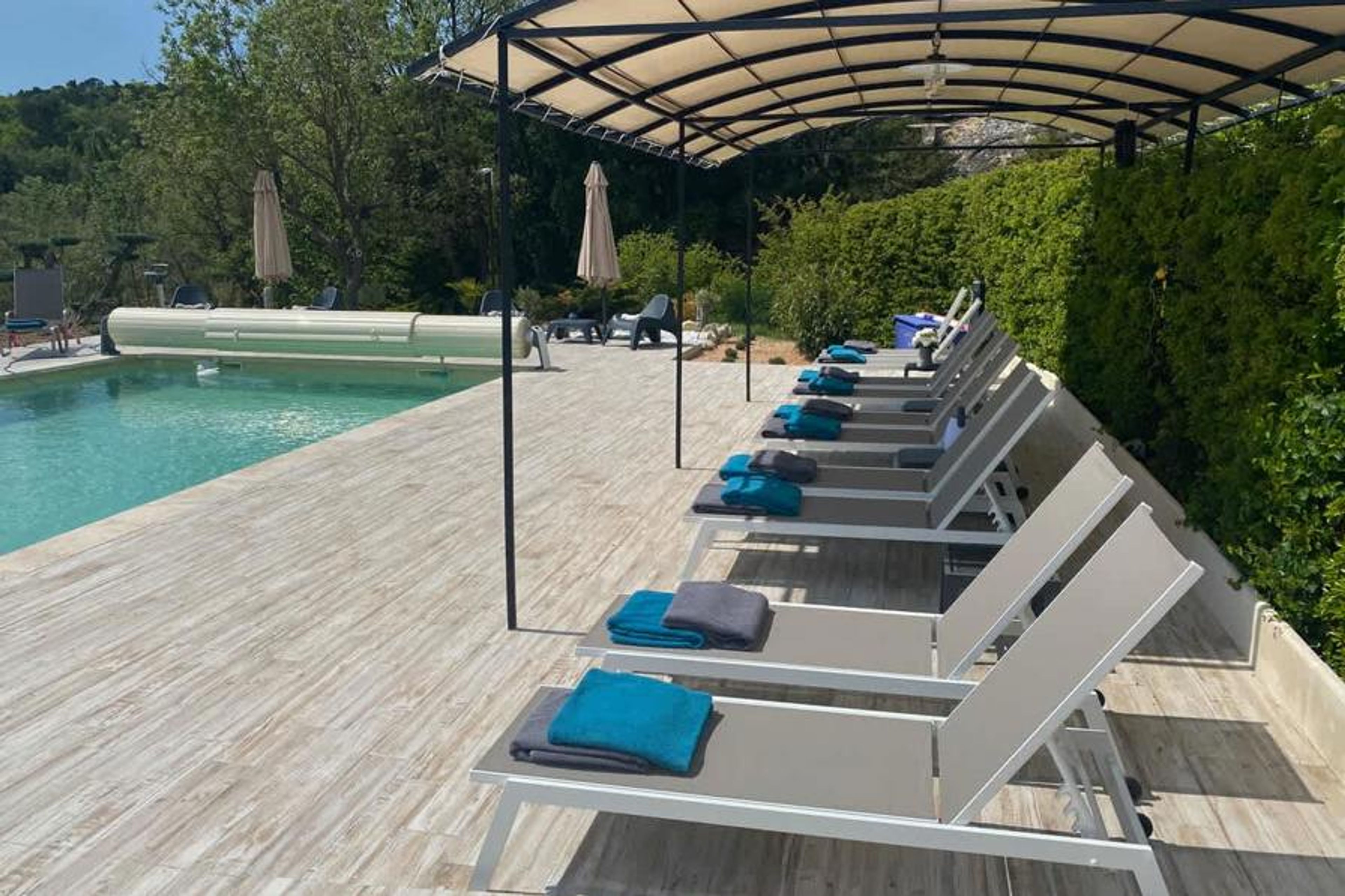 Outside, the property offers a true haven of peace. The heated and secure swimming pool invites relaxation, surrounded by vast natural spaces. A pétanque court completes the typically Provençal experience and will delight those who love conviviality.