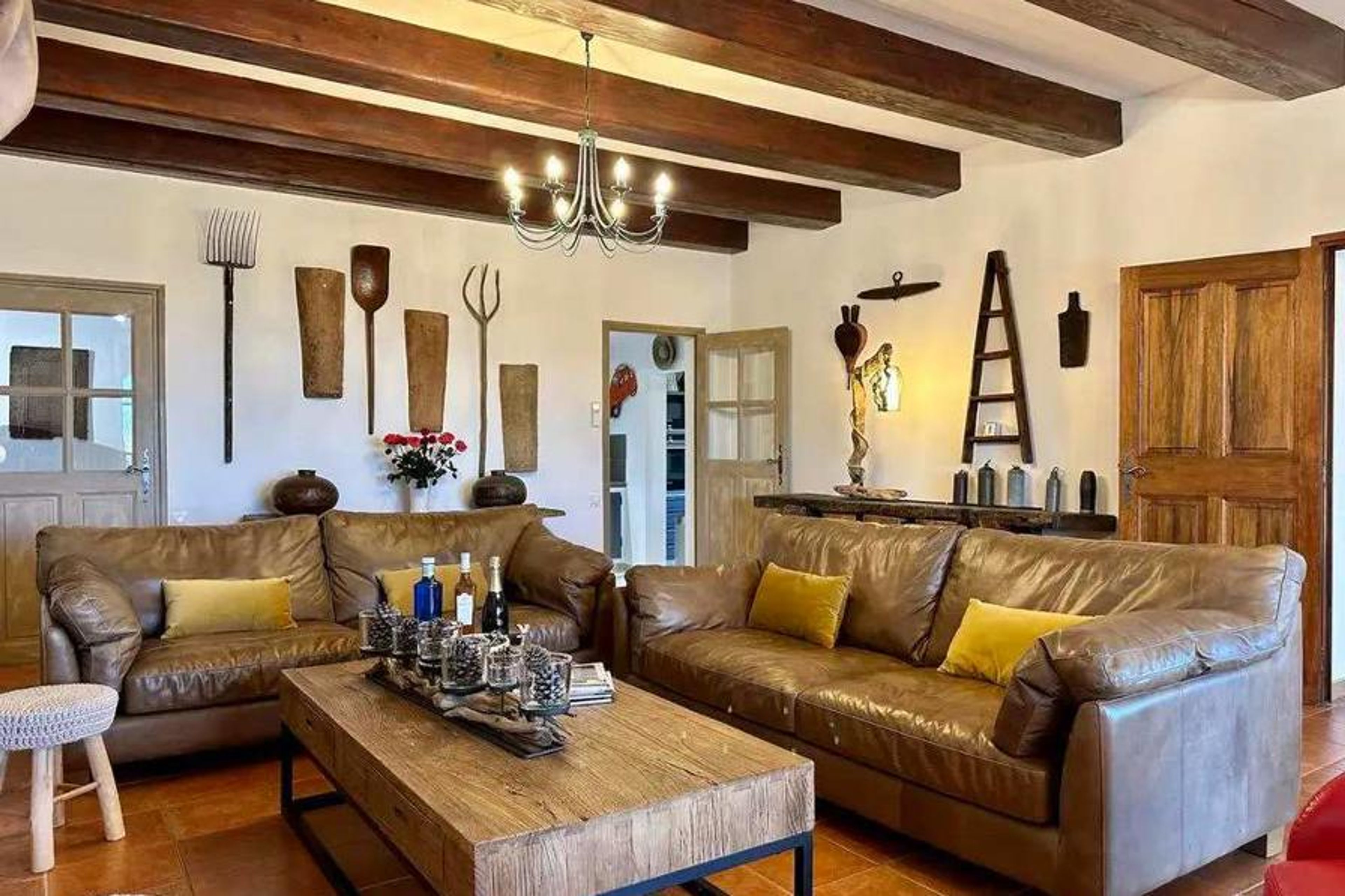 The country house has 5 spacious bedrooms, each equipped with its own private bathroom and television. The layout ensures privacy and comfort for all guests, while maintaining a warm atmosphere.