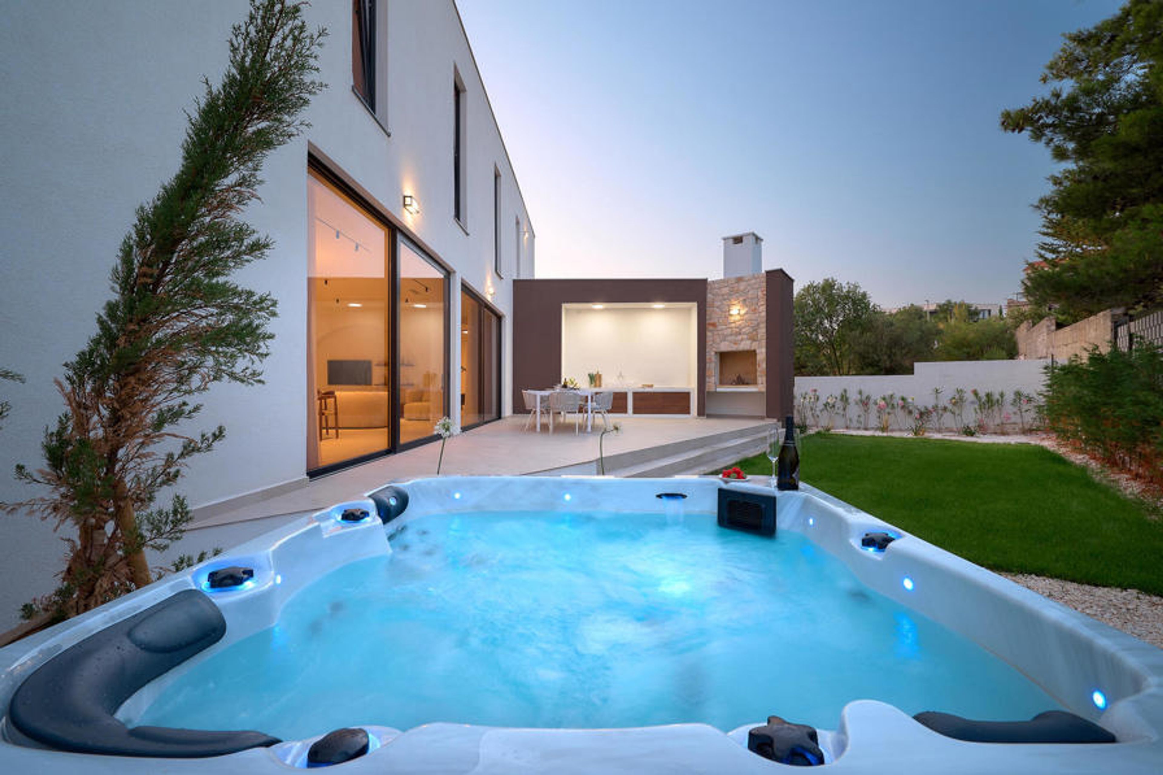 Enjoy the panoramic view of the Adriatic Sea outside. Dive into the infinity pool, which seems to melt into the horizon, or relax on one of the stylish loungers on the sun terrace. In the well-tended garden, you'll find a retreat with modern seating furniture, while the summer kitchen with barbecue invites you to dine together in the open air. In the evening, the subtle lighting creates an atmospheric ambience while you spend cosy hours in the whirlpool.