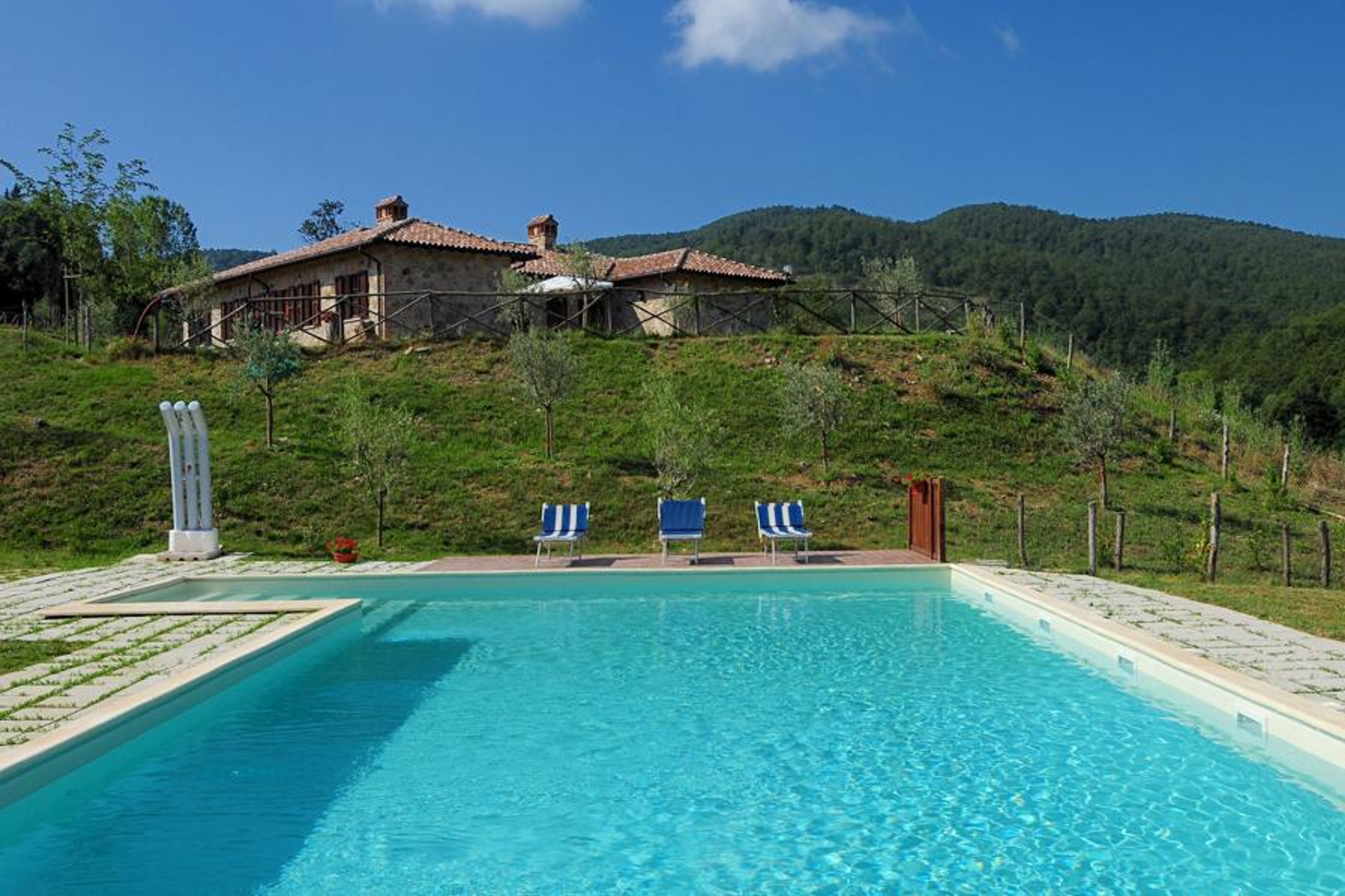 Unwind by the shared swimming pool (14 x 7 m, open June–September), enjoy a peaceful walk in the forest just 200 m away, or take a scenic bike ride through the lush surroundings. Visit the historic towns of Perugia and Cortona or explore the medieval towers and churches nearby. For a refreshing break, Lake Trasimeno is only 8 km away, perfect for swimming, boating, or a lakeside picnic.