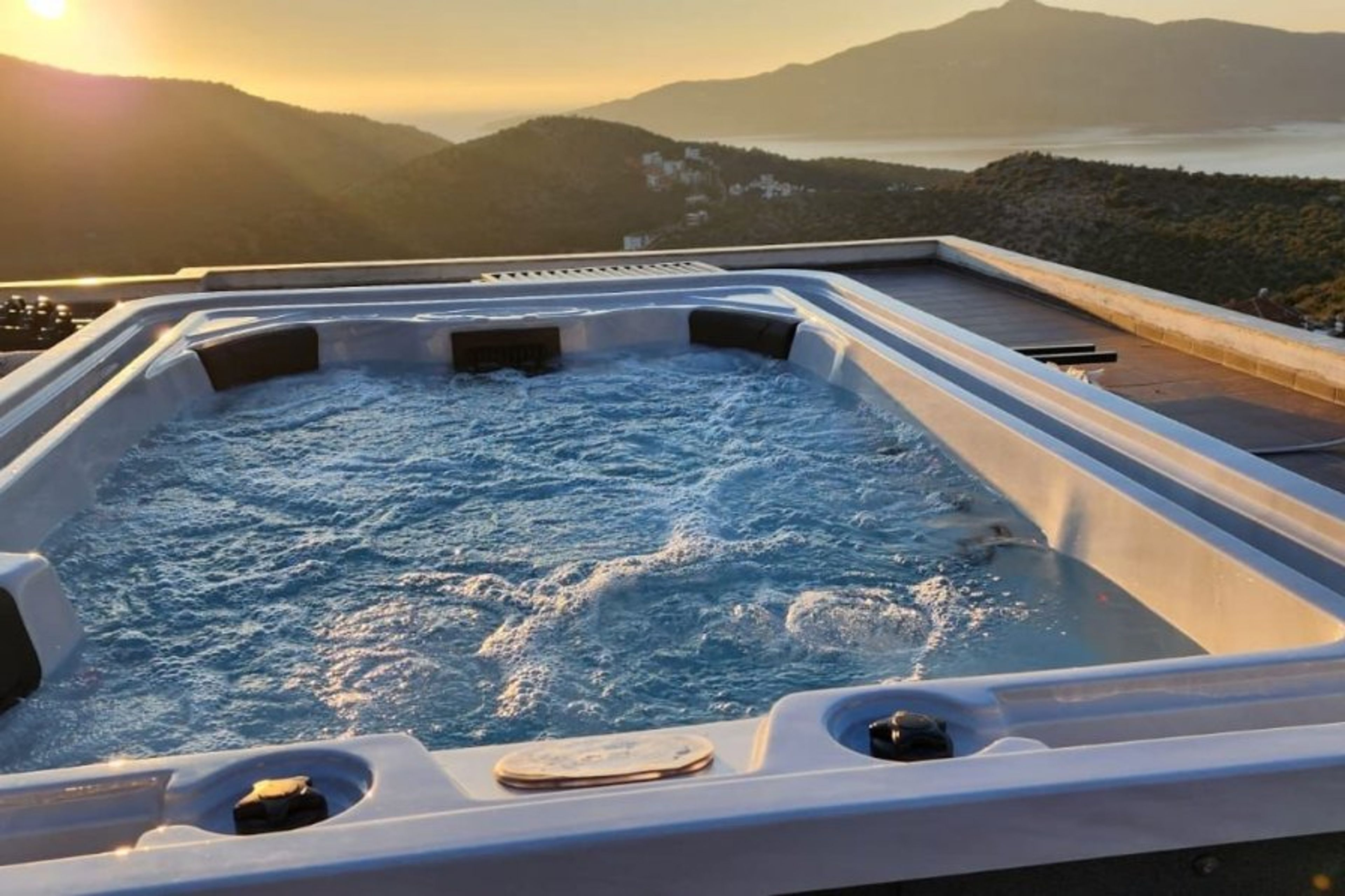 Inside, the villa provides a range of entertainment options to enhance your stay. A billiards table creates a fun and social atmosphere where you can spend quality time with friends and family. For ultimate relaxation, the rooftop area features a heated jacuzzi with music, offering a soothing and tranquil environment, especially during sunset or in the evening hours. The rooftop also includes a fully equipped kitchen, ideal for preparing meals and enjoying outdoor dining with unforgettable views.