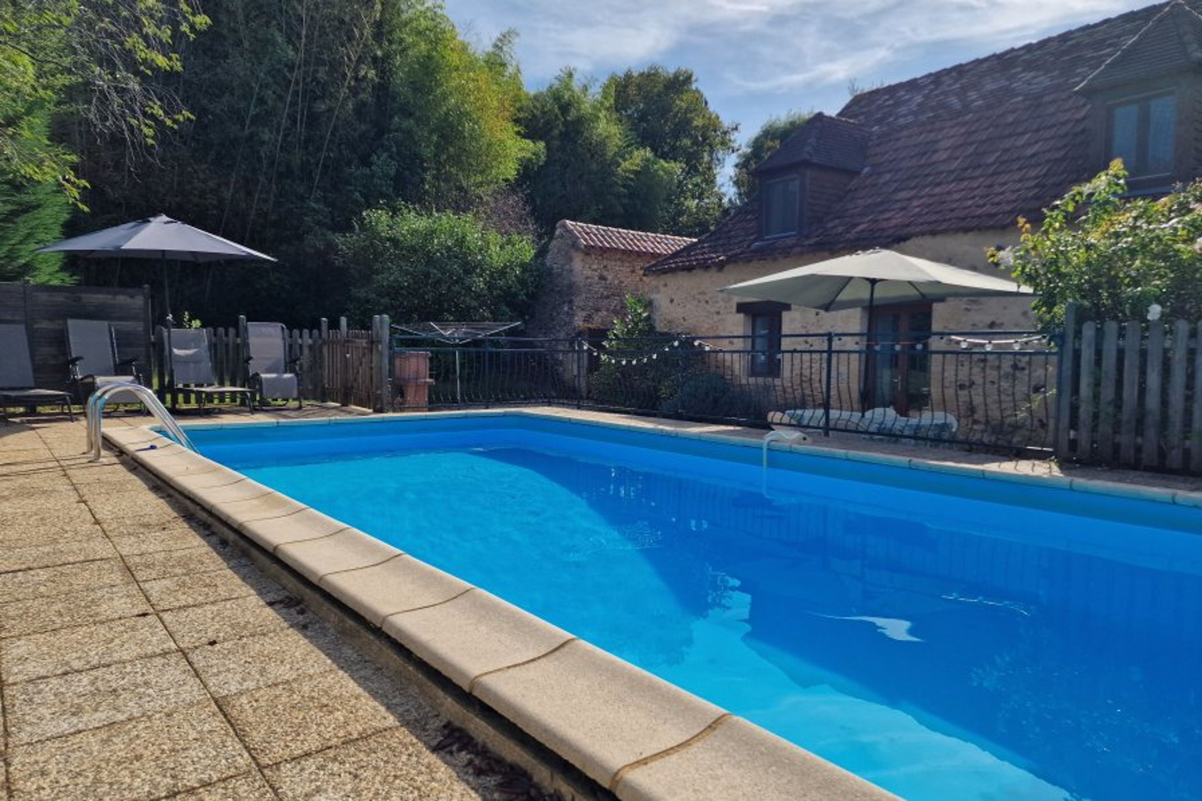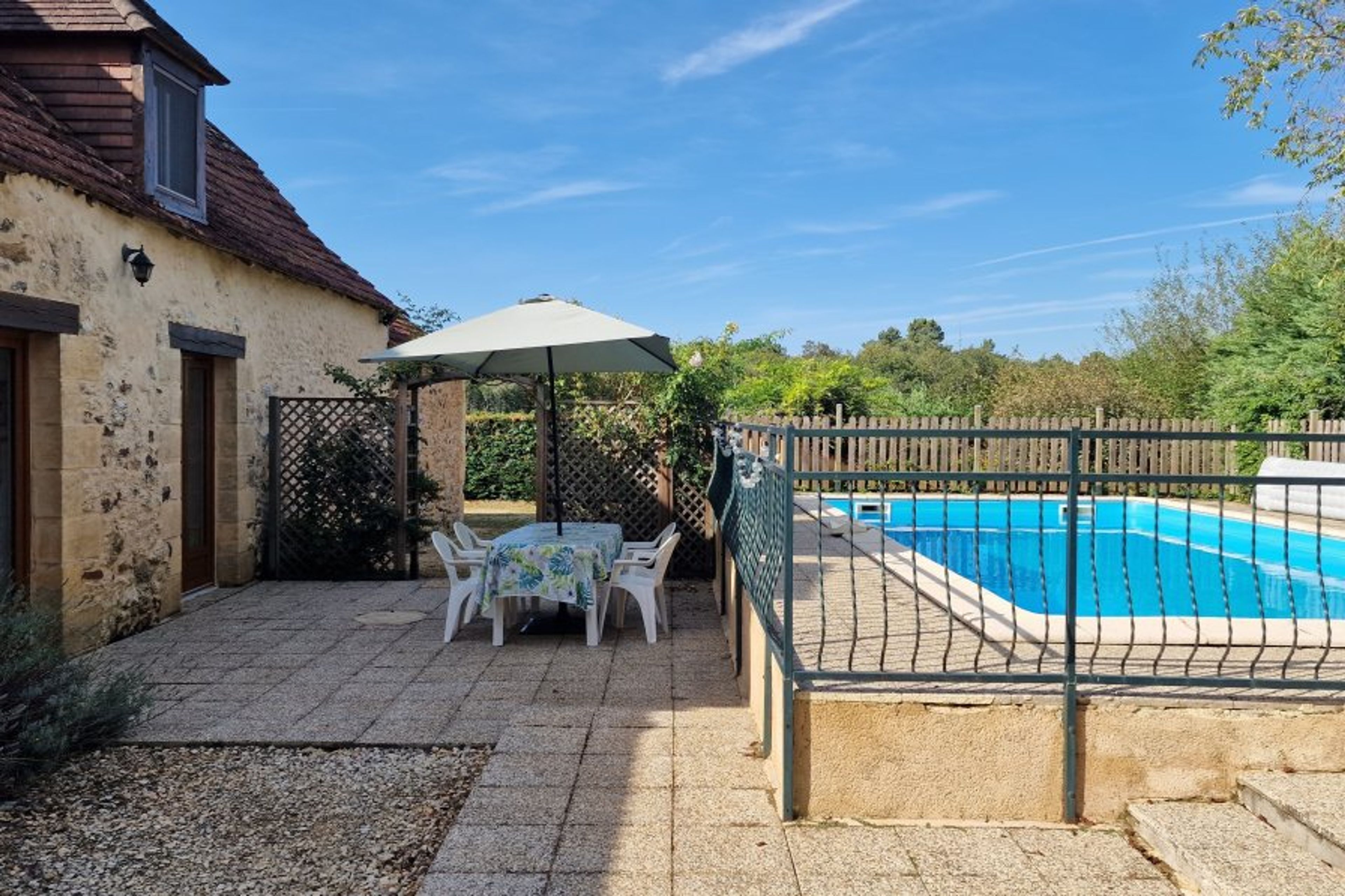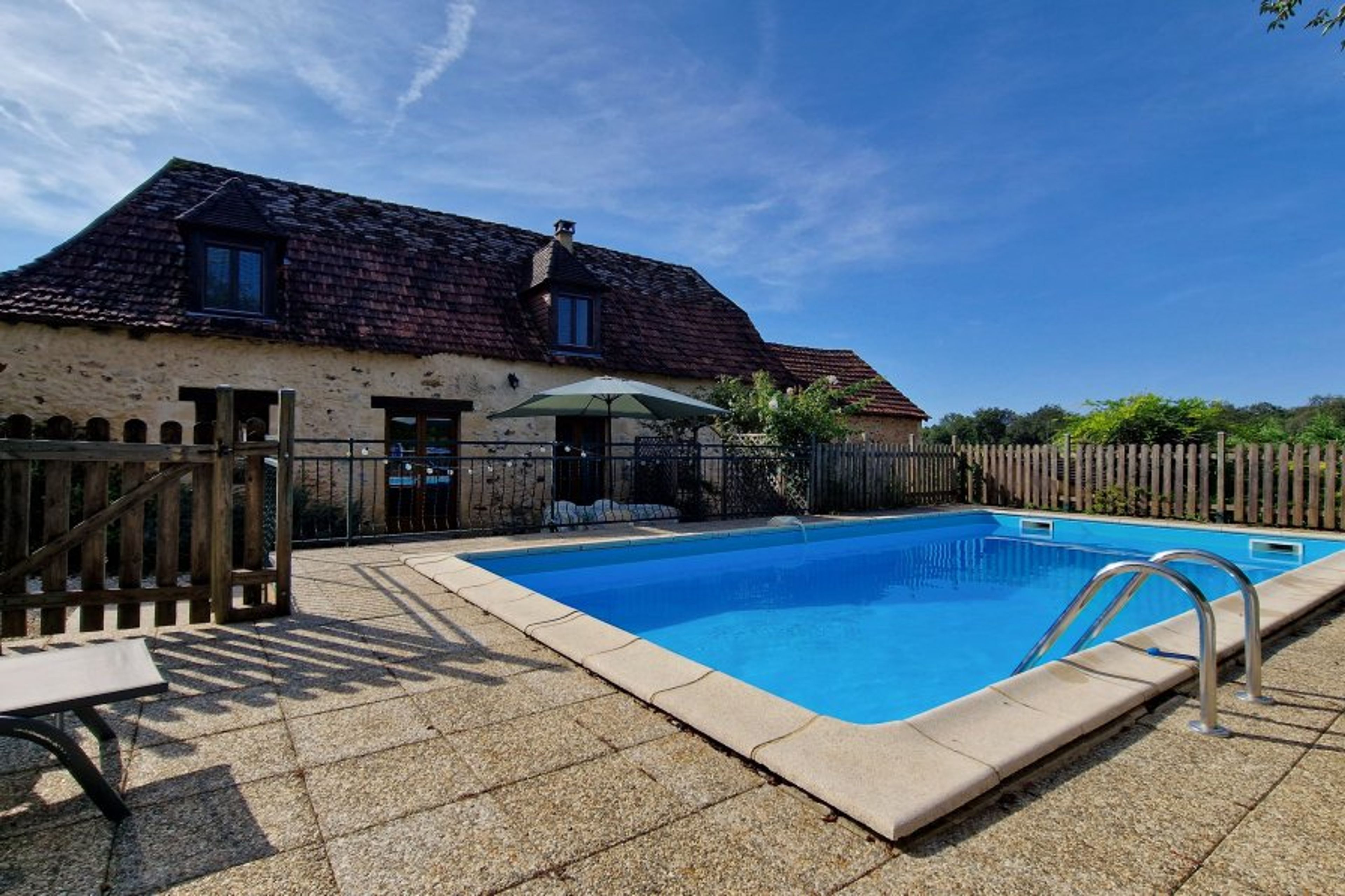 Beautiful Dordogne stone house with private pool, shaded terrace and BBQ. Sleeps 5, peaceful setting, 2 bedrooms, 2 bathrooms, ideal for exploring Le Bugue and the Périgord Noir.