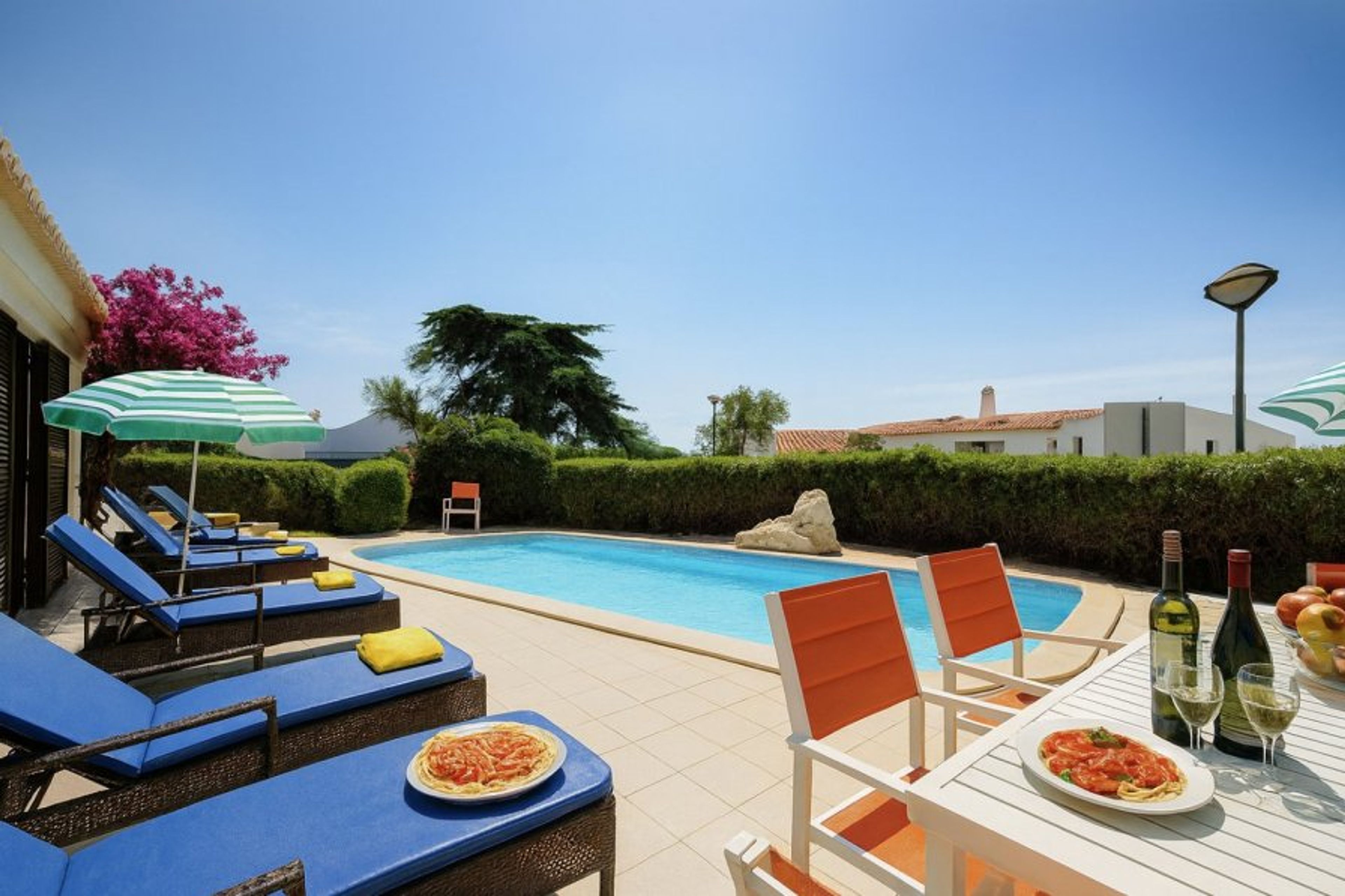 Lovely villa with private pool and air-conditioning. Located in the heart of Albufeira town, within walking distance of the beach, bars, cafes, night life, the strip, and the Old Town.