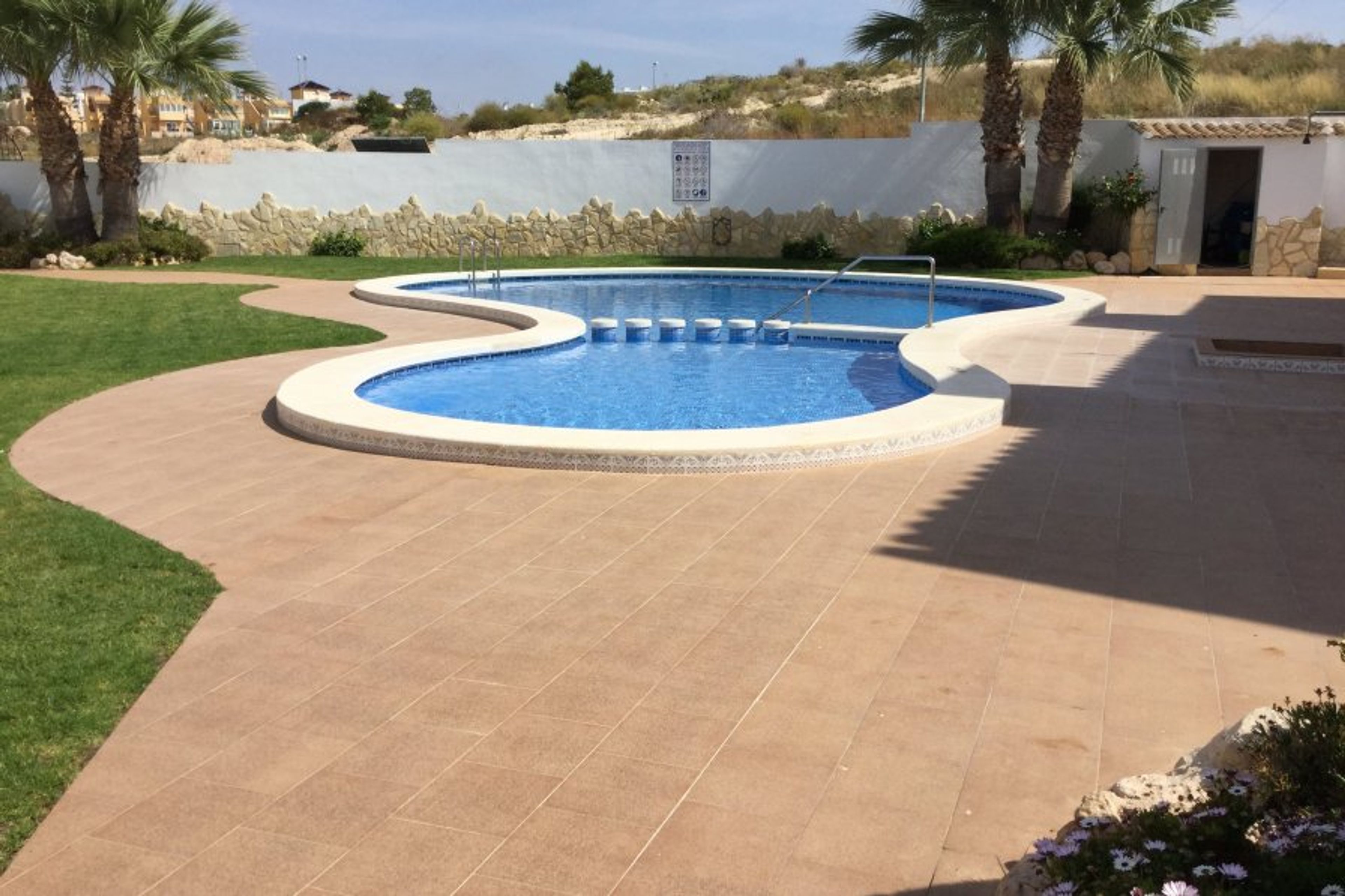 This is a lovely 3 bed ground floor apartment, near to the popular Villamartin Plaza. It is on the ground floor of a two-storey building. There is a paved terrace garden with dining/barbecue area and sun beds for sunbathing.