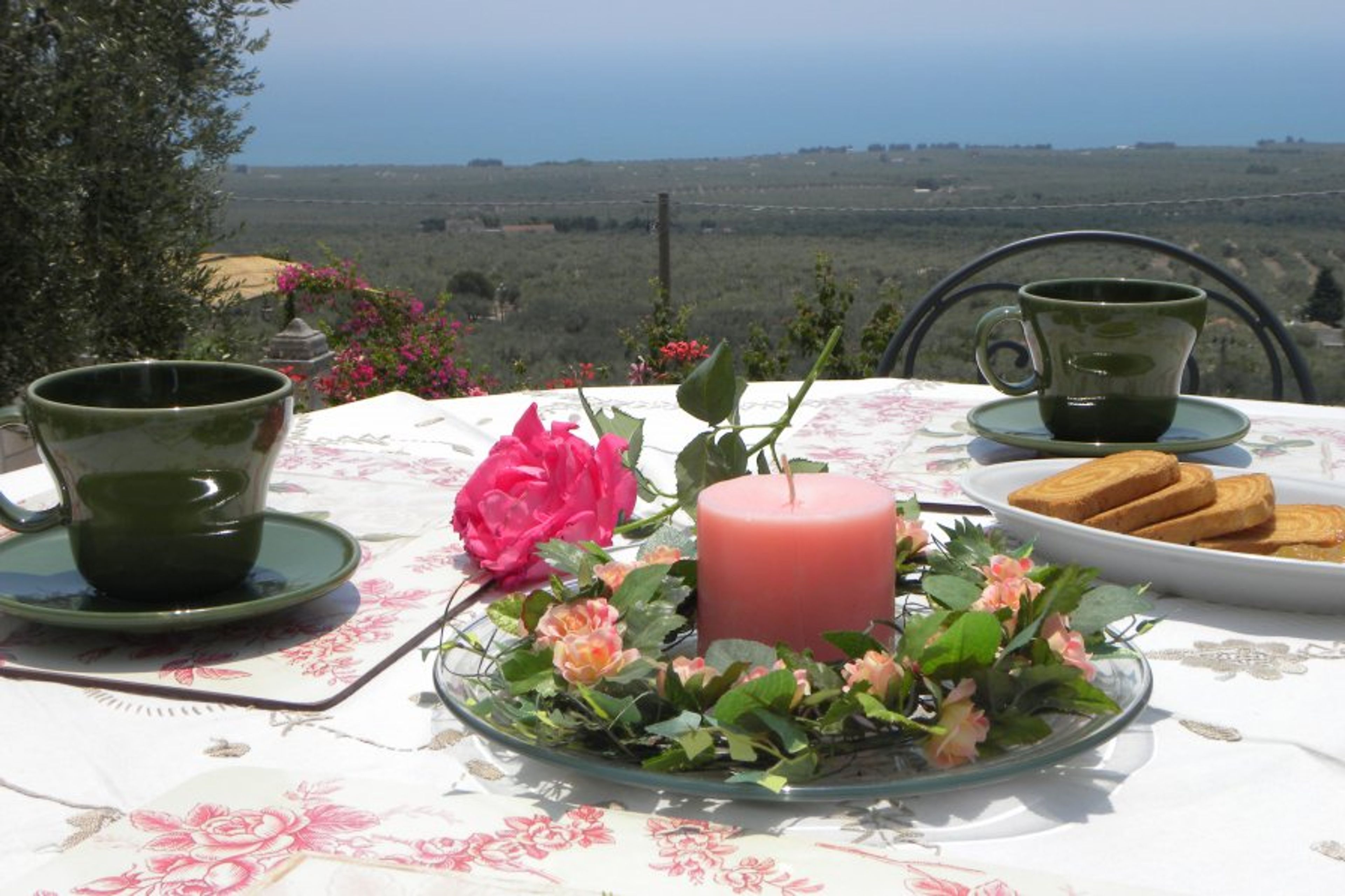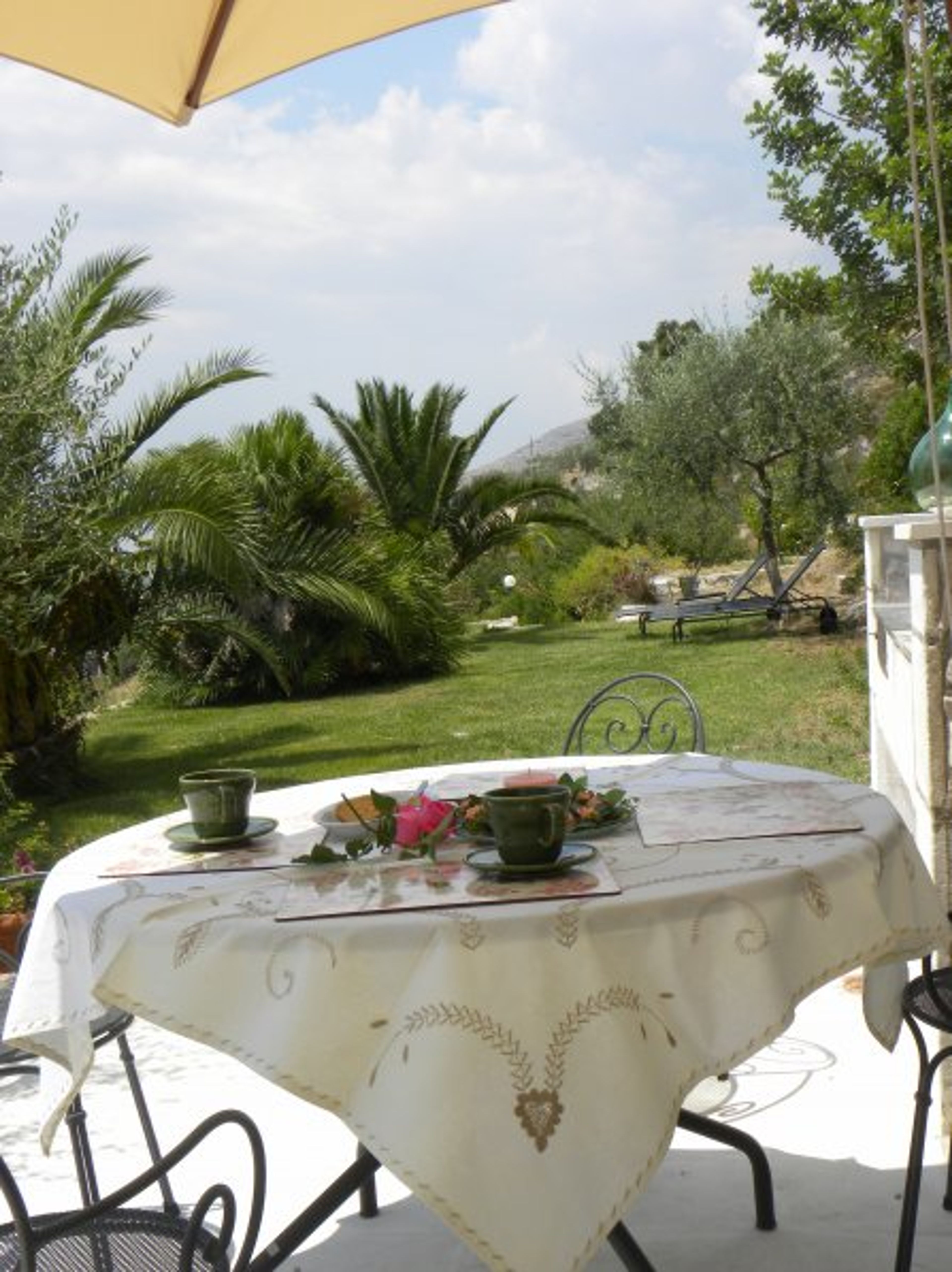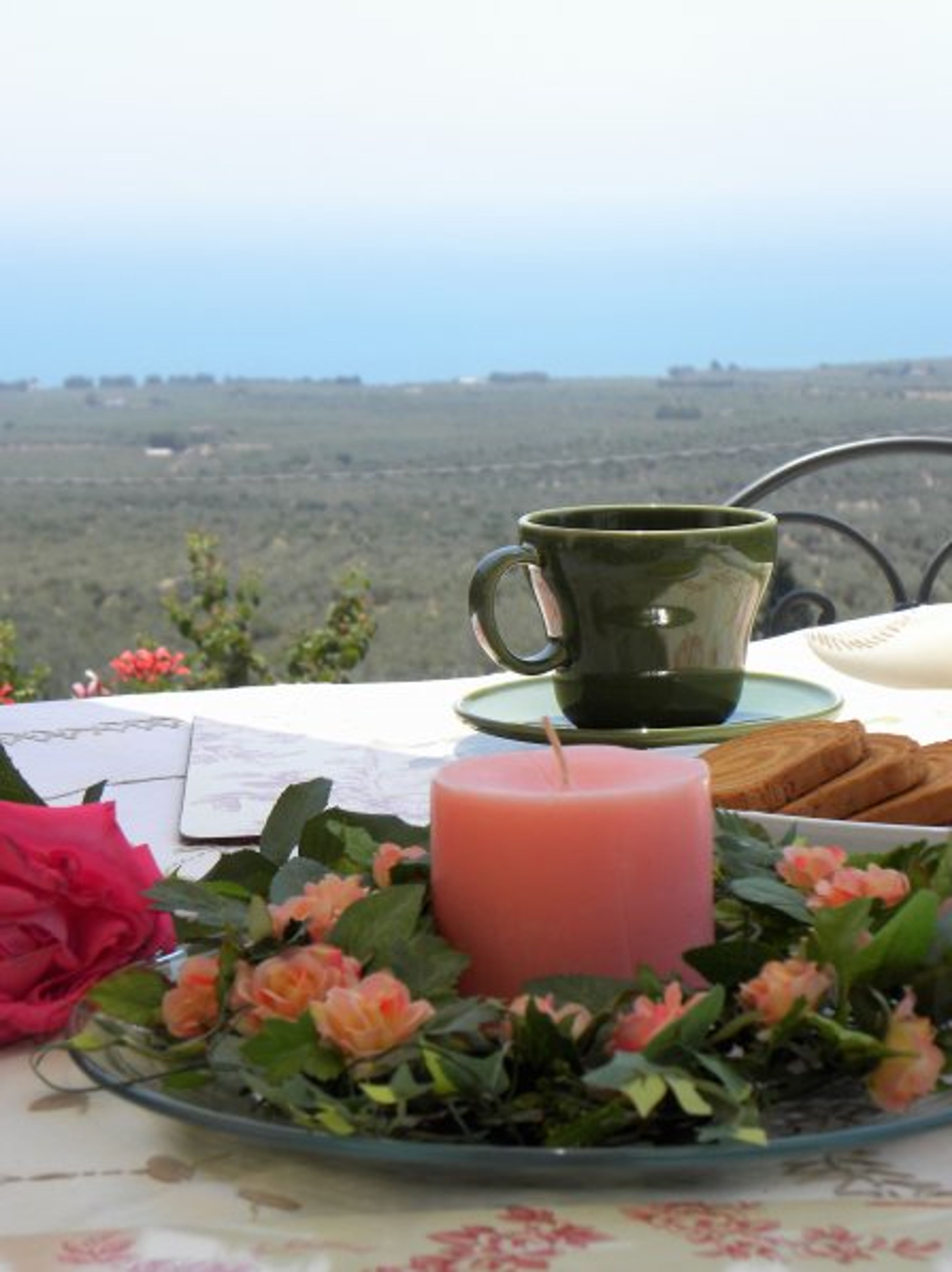 "Roxane"enjoys an outdoor space as well , a private , large equipped lawn overlooking the sea with loungers, table ,chairs and bbq.