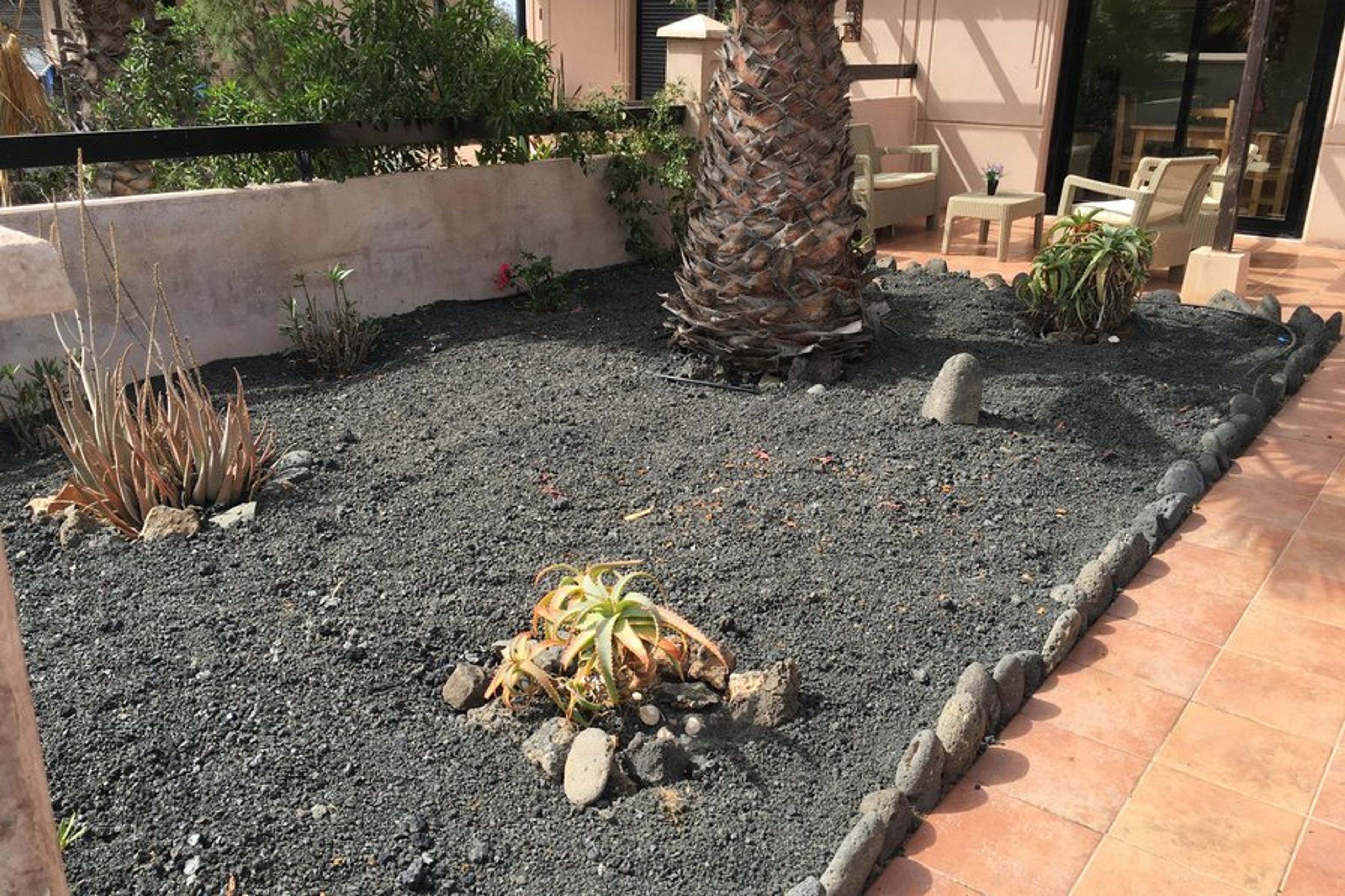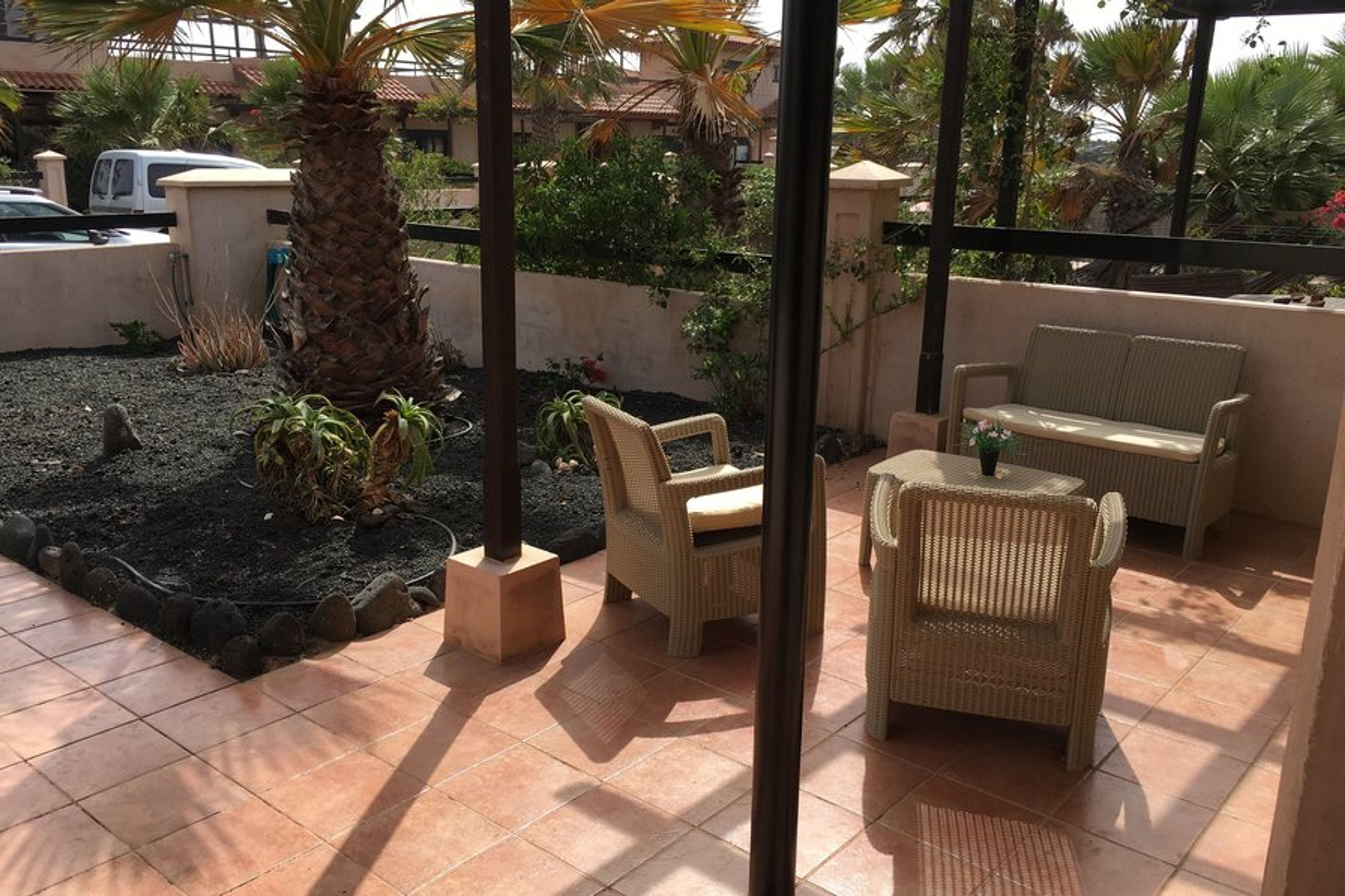 Tranquil, homely and beautiful one bedroom house with lovely roof sun terrace and stunning ocean and mountain views in Majanicho. Front and rear gardens. Close to restaurants, bars and shops.
